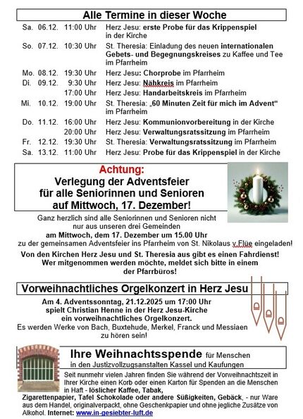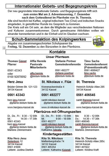 Die Vorbereitung ist am Donnerstag, 08.01.2026 um 16:00 Uhr im Pfarrheim der Herz Jesu Kirche, Kassel.