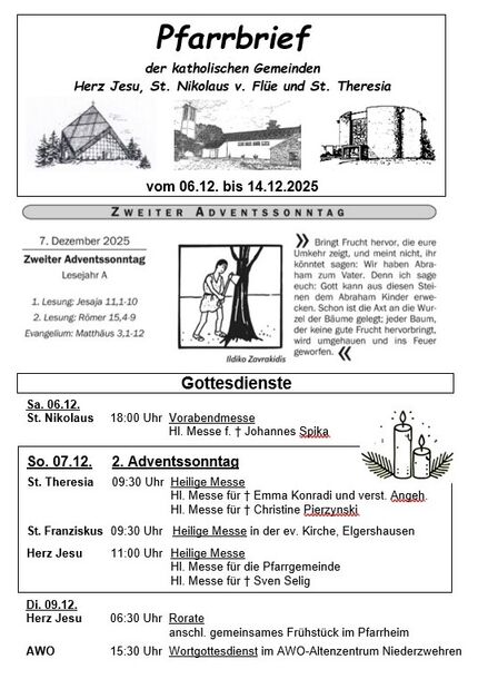 am Sonntag, den 11. Januar 2026 um 09:30 Uhr in die St. Theresia Kirche, Kassel-Helleböhn ein.